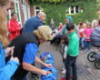 Neun Stationen mit verschiedensten Aufgaben erwarteten die Teilnehmenden und zwischendurch gab es auch Fragen zu beantworten. So konnte man sich z. B. an Leitergolf, Dreibein-Laufen oder einem Geschicklichkeitsparcours versuchen und hatte die unterschiedlichsten Quizfragen zu meistern. Die Teilnehmenden , im Alter zwischen 6 Monaten und 84 Jahren, waren eifrig bei der Sache und auch ein kräftiger Regenschauer zwischendurch konnte die gute Laune nicht trüben.
