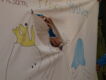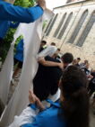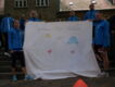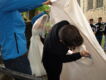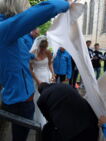 Die Gruppe der Läufer stand mit neuem Outfit Spalier. Das frisch getraute Paar musste dann noch das »Plan haben« Logo mit einer Schere aus einem Laken schneiden. Der Bräutigam trug dann seine Braut durch das Logo. Wir wünschen dem Paar immer einen guten "Plan" für den weiteren gemeinsamen Weg.