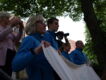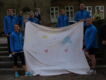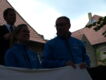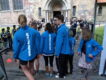 Die Gruppe der Läufer stand mit neuem Outfit Spalier. Das frisch getraute Paar musste dann noch das »Plan haben« Logo mit einer Schere aus einem Laken schneiden. Der Bräutigam trug dann seine Braut durch das Logo. Wir wünschen dem Paar immer einen guten "Plan" für den weiteren gemeinsamen Weg.